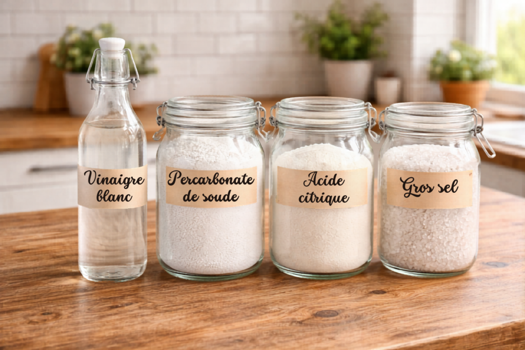 Le coût : percarbonate, acide citrique, gros sel et vinaigre blanc achetés en vrac reviennent bien moins cher que les tablettes du commerce — et sans emballage plastique individuel pour chaque dose.